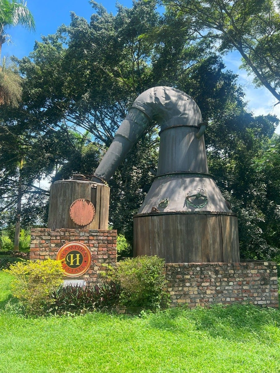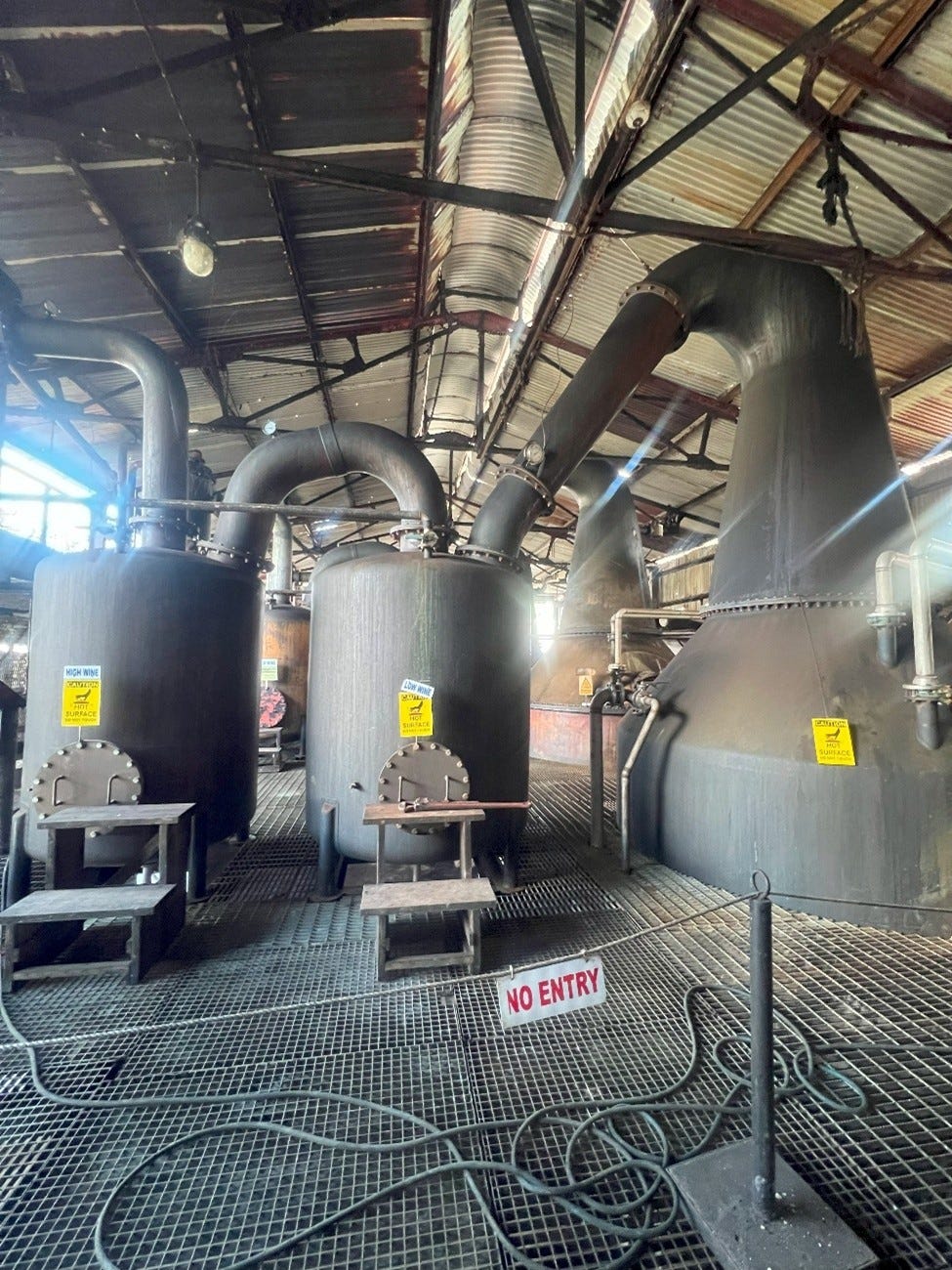 There was one room/factory behind this door where I was not allowed to take pictures or videos, and that is the place where the fermentation happens. It’s a hot and smelly enclosure. But any rum drinker who gets a whiff of that room would conclude that the pungency is directly what contributes to the liquid tasting so unique. Your brain, therefore, rewires and says, “Okay, doesn’t smell too bad.” Otherwise, I got to see all the magic and hallmarks of the place: the pot stills, the rum going from A to B, the barrels, etc.