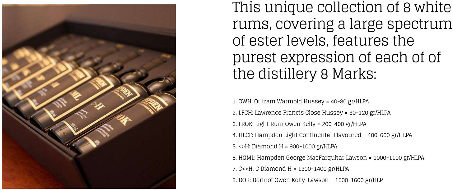 To quickly tie this back to the Hampden 8: that liquid is from their lowest-ester mark, or OWH. They have an 8 mark collection that, if you are not a discerning rum/spirit drinker, and maybe even if you are, I am fairly certain you will find to be a not-so-pleasant experience. But I don’t know, buy it and try, so that when you take the first few sips, start coughing, you’ll reach out and say, “Please take this from me,” to which I will respond in the affirmative.