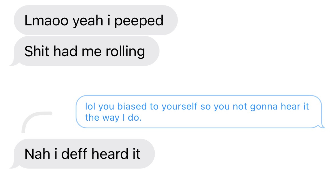 I grew up in the Bronx (NYC) and have an understandable east-coast, “lyrical-myrical,” "boom bap" rap preference. That Big L float on the beat, talk that talk style of hip hop. Words, metaphors, schemes, and how you flip them are unquestionable characteristics on which your talent is assessed. Which, I can concede, is a narrow (and traditional) way of looking at things. Alas, I like it here.