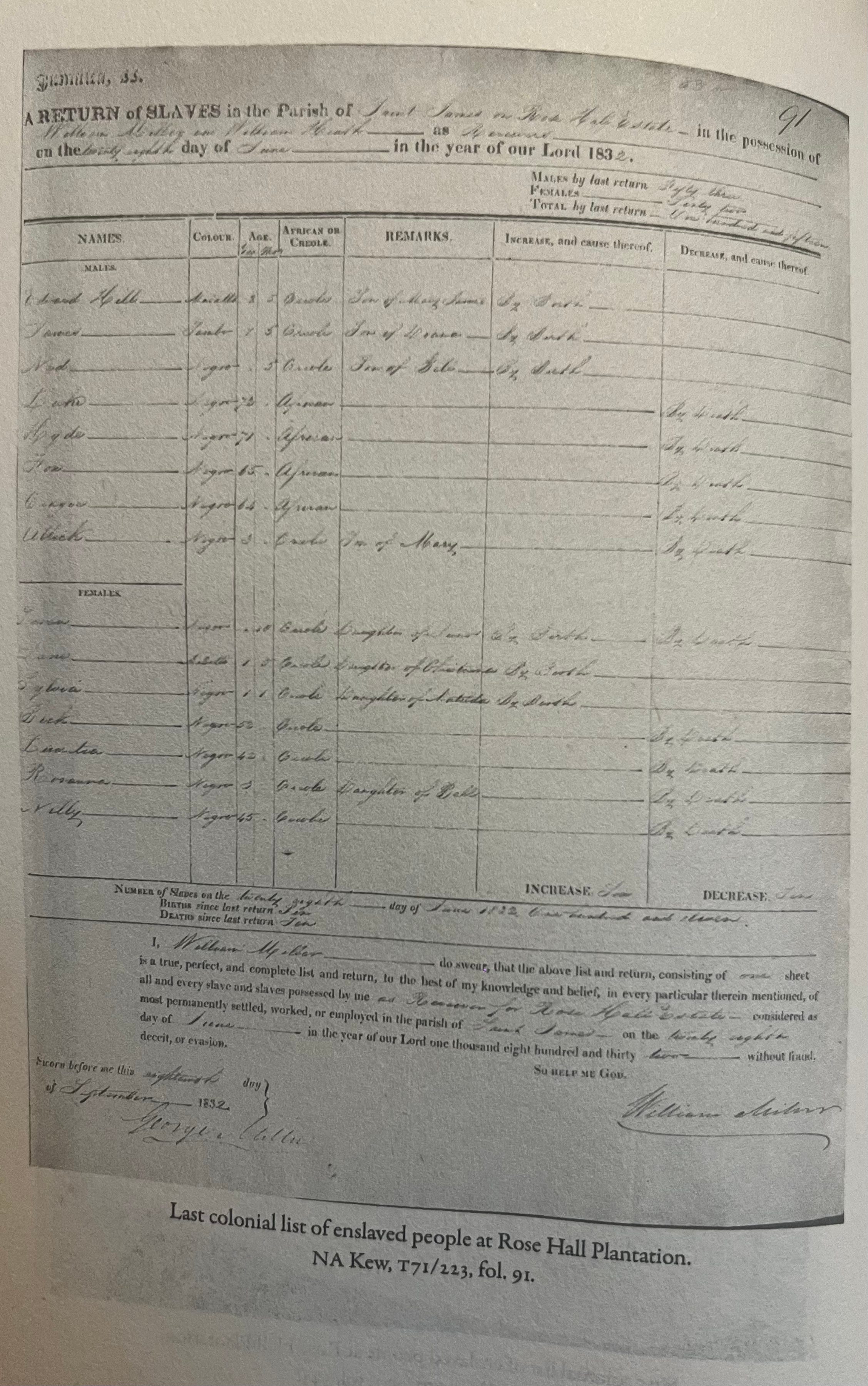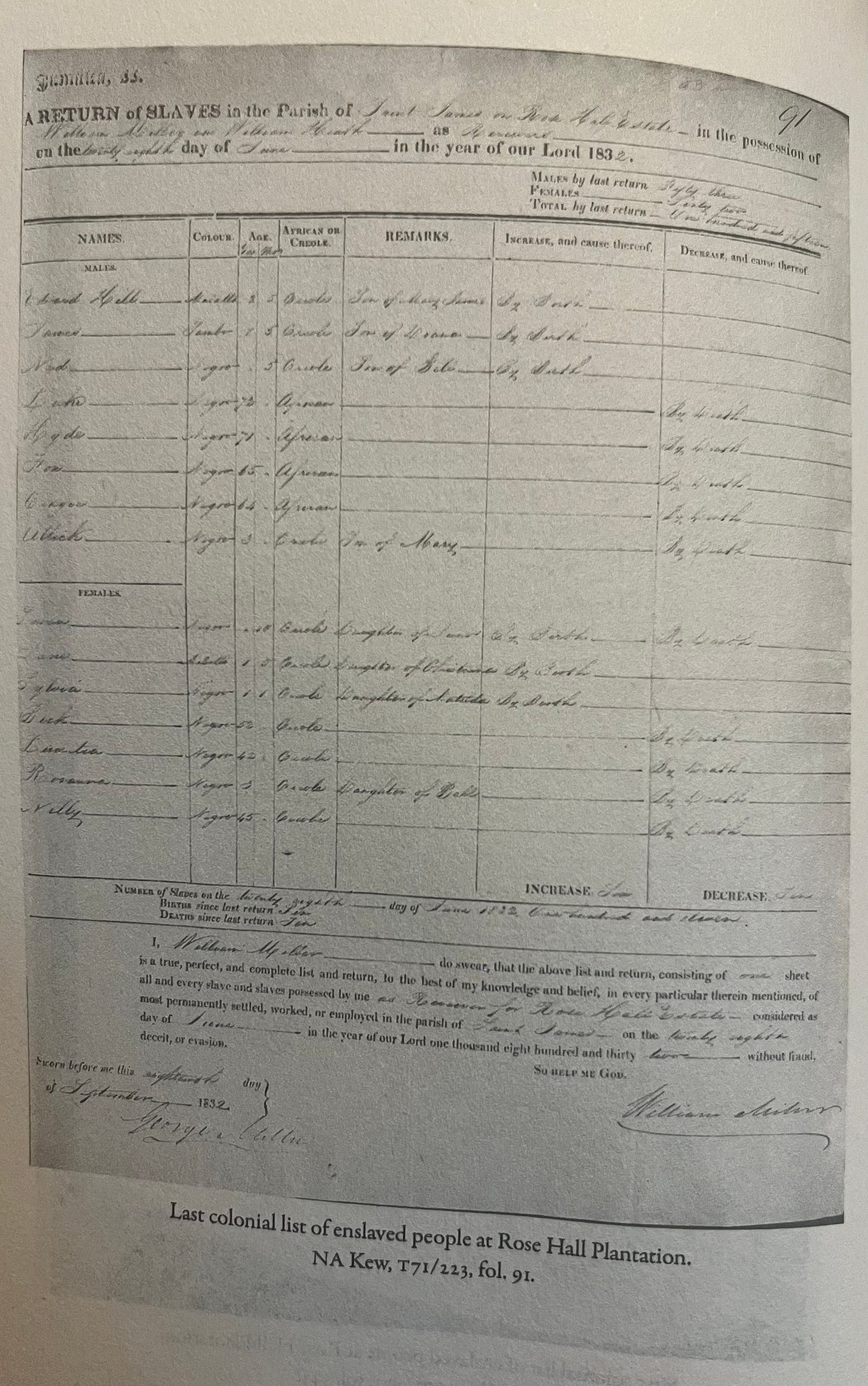 Exhibit – “First Colonial List of enslaved people at Rose Hall Plantation”