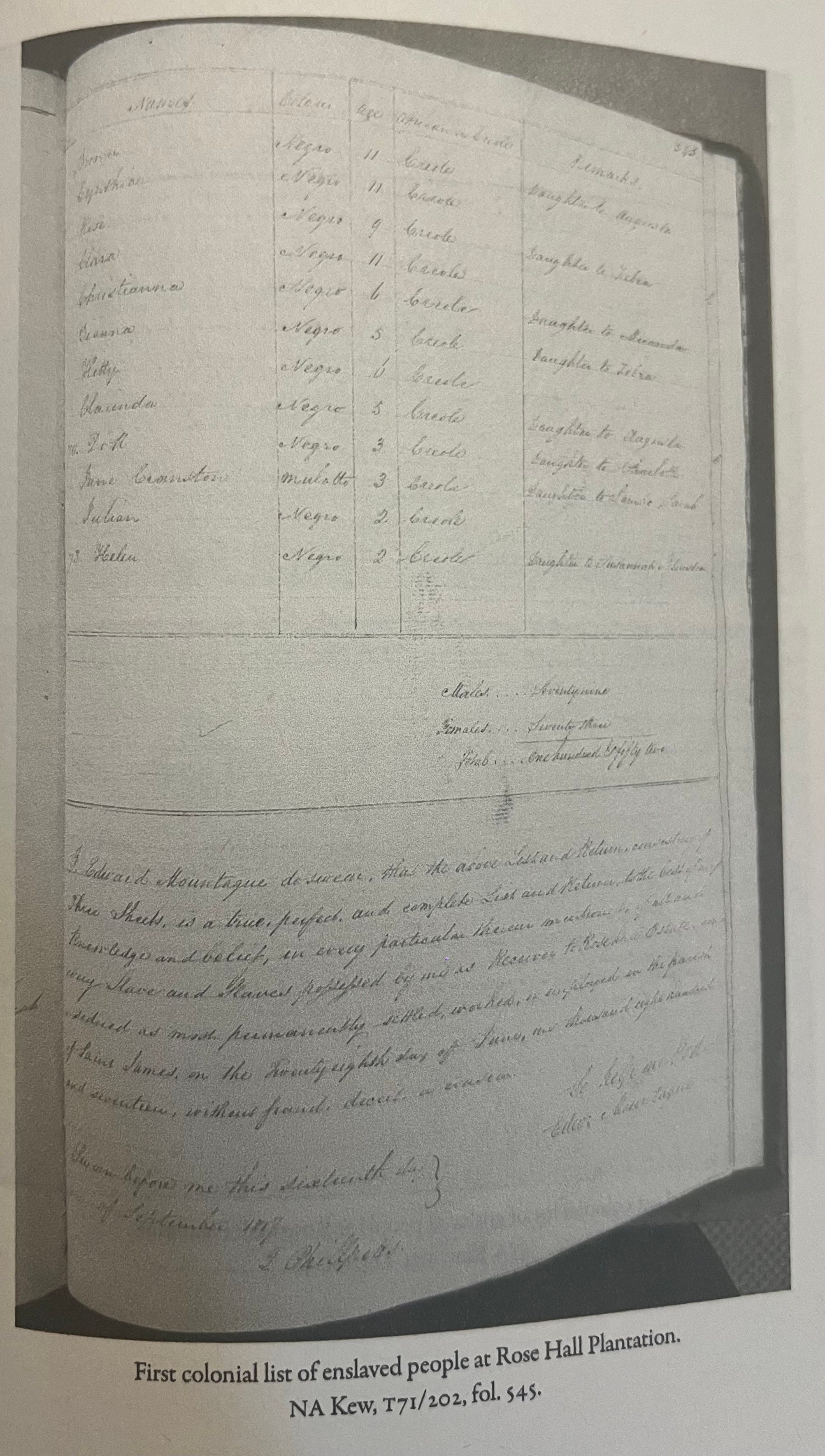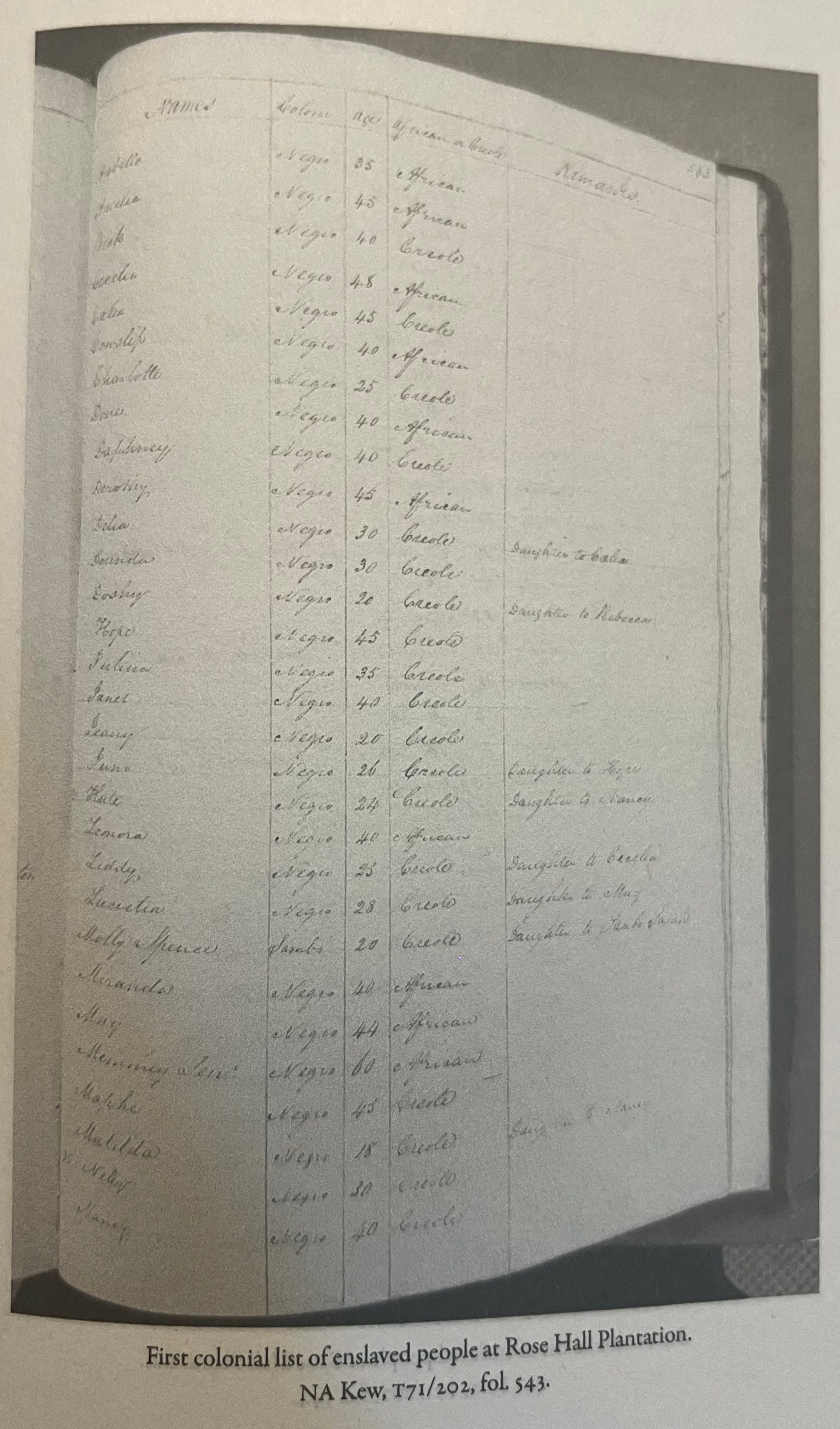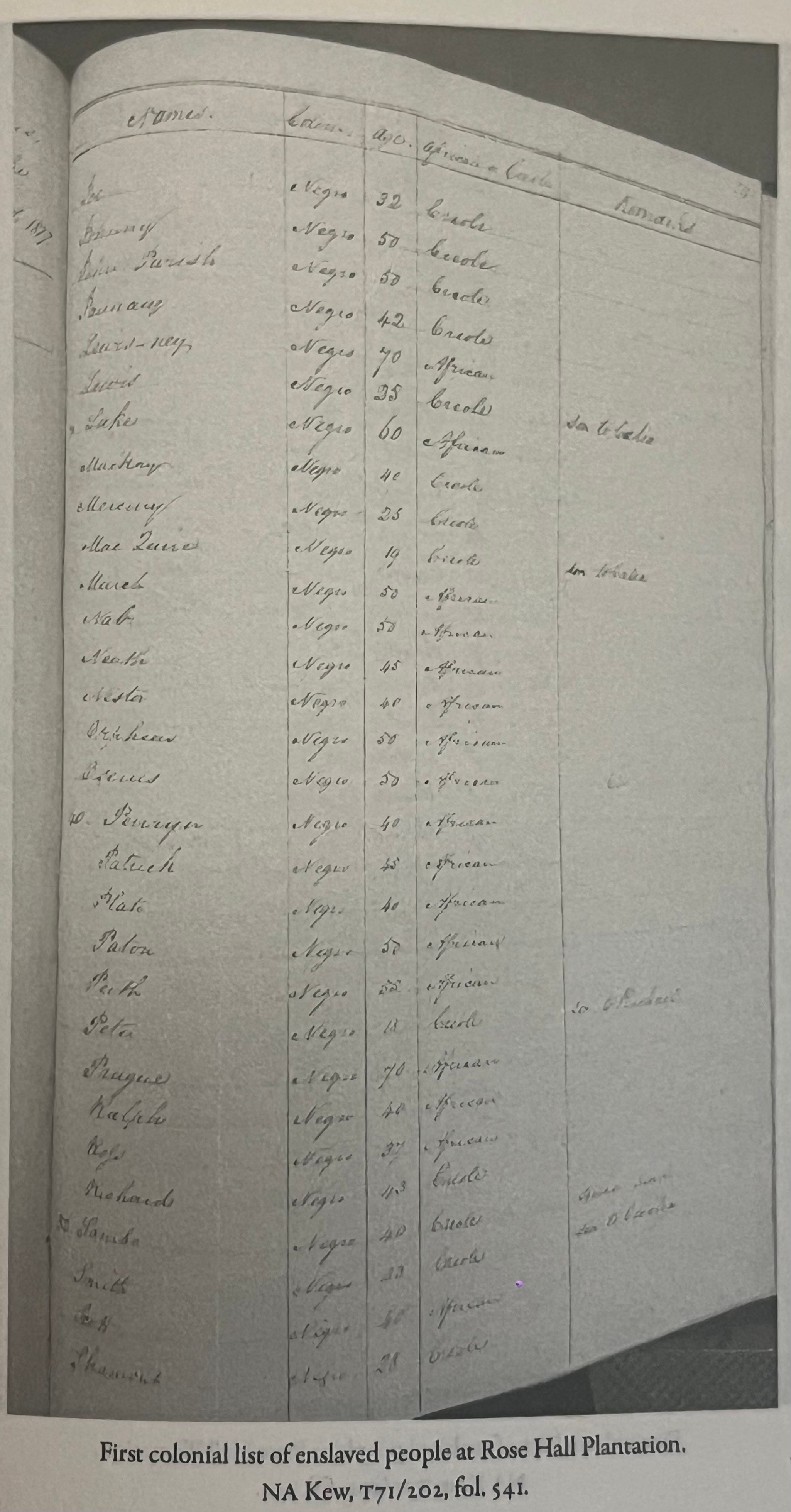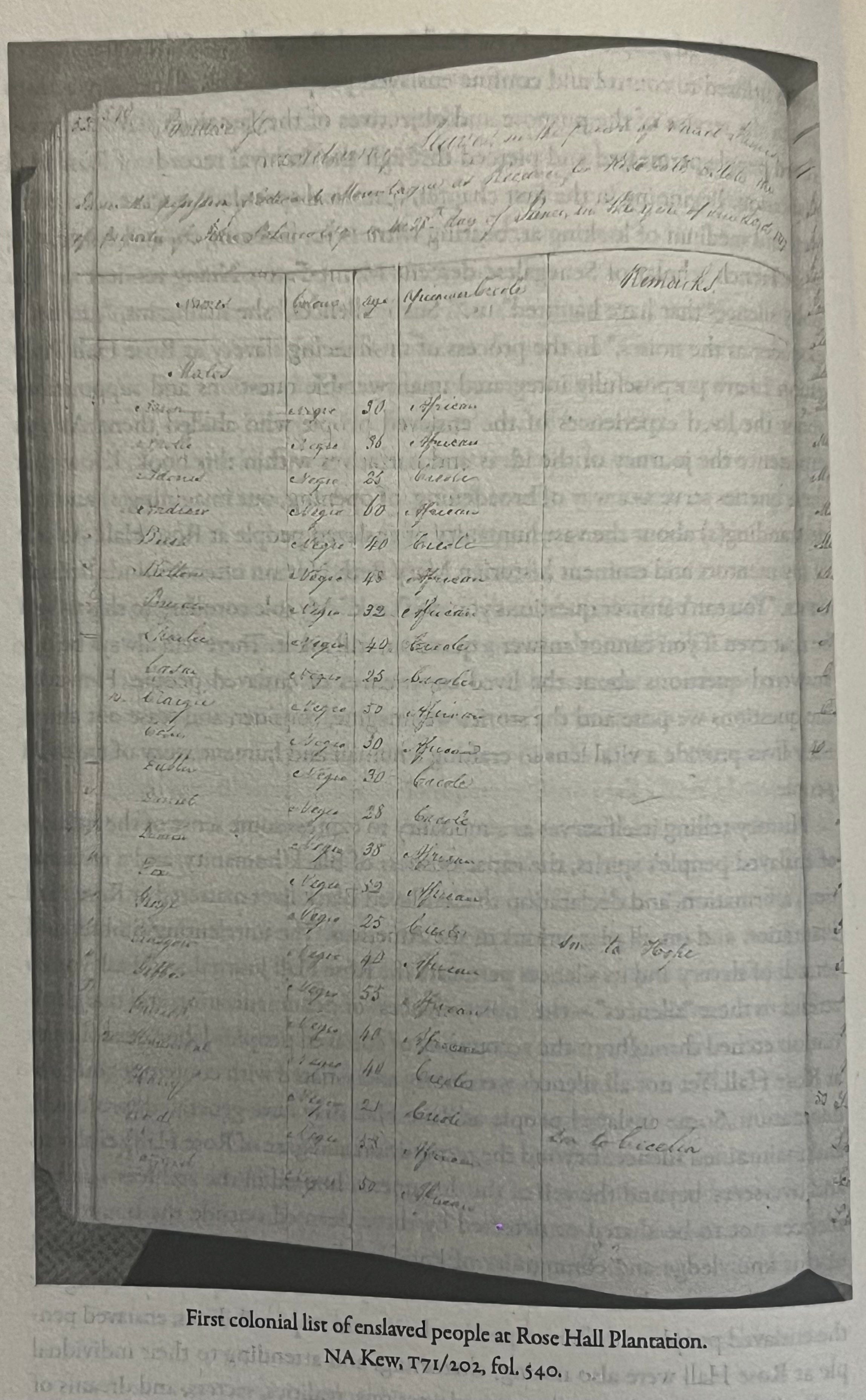 Note: At the end of the piece, I’ll provide the pictures (Exhibit) of the full list of enslaved people’s names and information in the Rose Hall Journal, unless an image or two would be very topical for what I’m discussing. If I am not mistaken, the author listed every enslaved woman (for sure) and man (I think) in the Rose Hall Journal. The names and information are fairly difficult to ascertain because the ink/images are faint. However, it is worth perusing given how important those kinds of primary historical sources are.