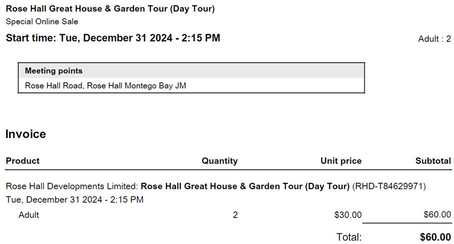 The Rose Hall Great House tour guides are not volunteers. There are no unpaid workers at Rose Hall. Staff members are also not contract laborers; instead, they are full time employees of Rose Hall Developments, Ltd., and they are paid in accordance with the labor laws of Jamaica. Tour guides receive health insurance, group life insurance, maternity leave, and pension benefits. They also receive free lunch, overtime, shopping vouchers, uniforms, paid vacations (between two and four weeks per year), and up to ten sick days per year.