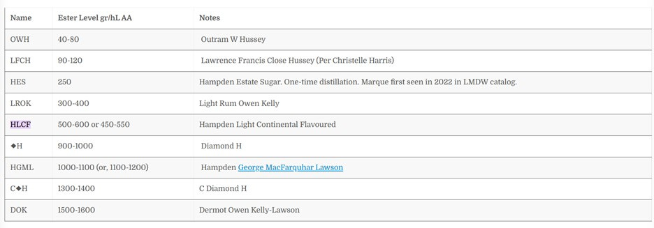 So, what drives the decisions on ester prevalence for Hampden (and Rum Fire)? A mix of heritage, profile & reputation goals, adherence to a part of Jamaican rum legacy (for some) in having prominent ester levels in their marques, appealing to a “rum aficionado” community (modern-day decision), having relevant rum profiles for varying export communities (perfume makers, ice cream manufacturers, chocolate manufacturers, (in)dependent bottlers & blenders, etc.), and a host of other ‘keep the lights on’ business rationales.
