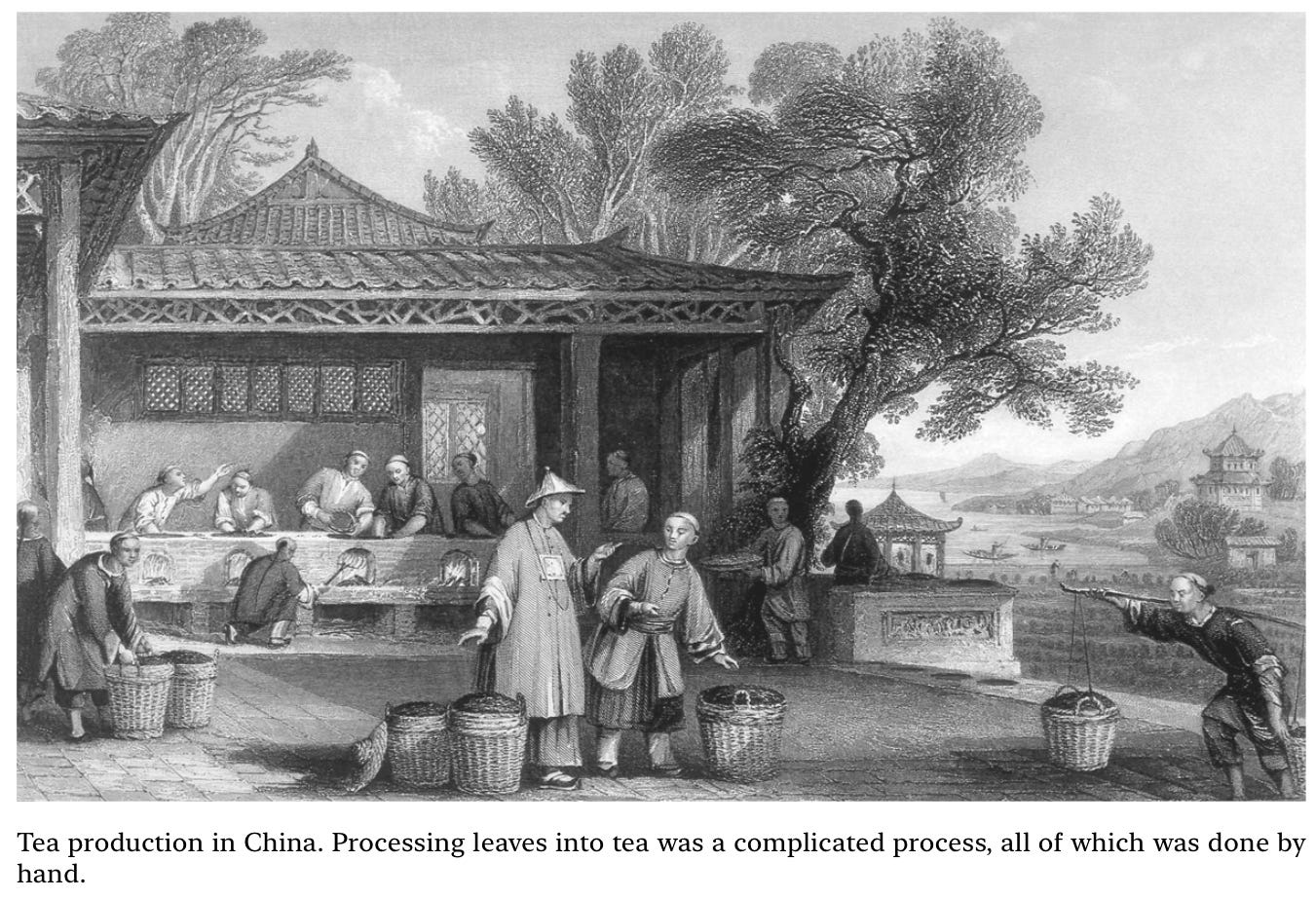 By the 1860s, helped along by industrial methods, tea manufacturing was in full force in India –