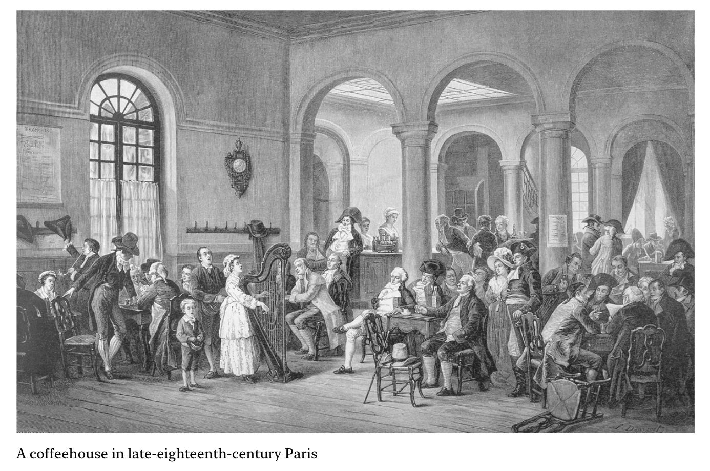 Out went dogmatic reverence for authority, whether philosophical, political, or religious; in came criticism, tolerance, and freedom of thought. The diffusion of this new rationalism throughout Europe was mirrored by the spread of a new drink, coffee, that promoted sharpness and clarity of thought. It became the preferred drink of scientists, intellectuals, merchants, and clerks—today we would call them “information workers”—all of whom performed mental work sitting at desks rather than physical labor in the open. It helped them to regulate the working day, waking them up in the morning and ensuring that they stayed alert until the close of the business day, or longer if necessary.
