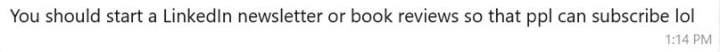 Scene 2 (paraphrased): A friend from back home in the Bronx, let's call him Grand Concourse (for privacy), reacted to my story: Bro, I hate reading. But your posts are inspiring me to read more. Keep posting.